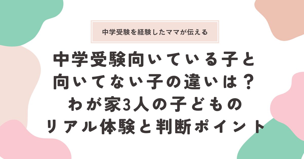 中学受験は誰にでも向いているわけではなく、子どもの性格や学習スタイルによっては負担が大きくなってしまうこともあるんです。